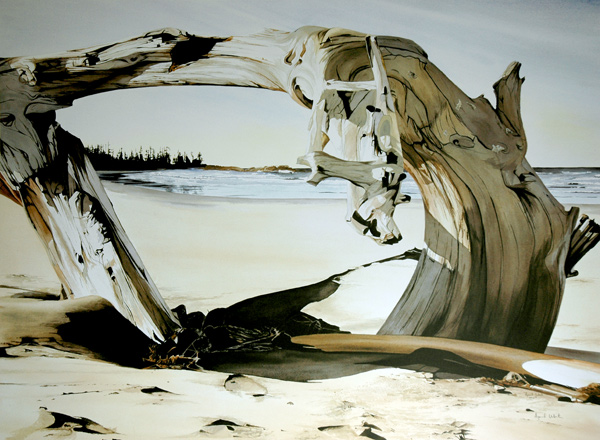 A weathered root drifted in with the tide and became entrenched into the sand. Seeing this conjured visions of Wasgo, the Sea Wolf, ready to stand guard. Its duty is to protect the beauty of Wickaninnish Bay, Pacific Rim National Park, on the west coast of Vancouver Island.